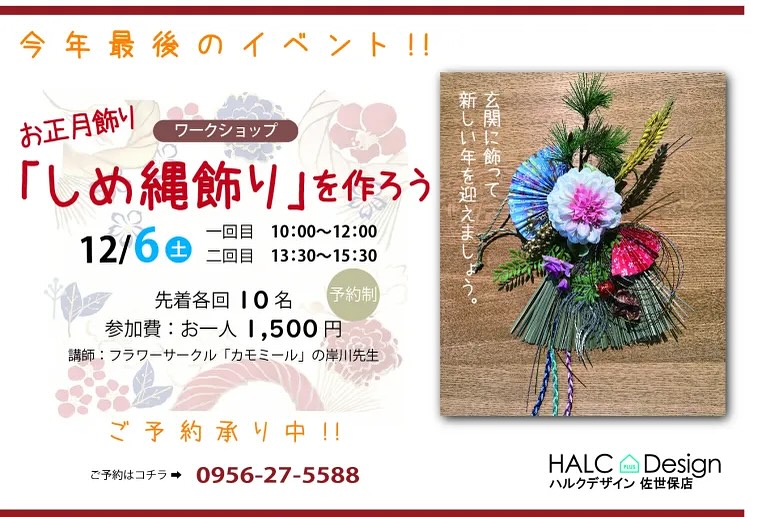 【ハルクデザイン佐世保店】12/6(土)はお正月飾り「しめ縄飾り」を開催