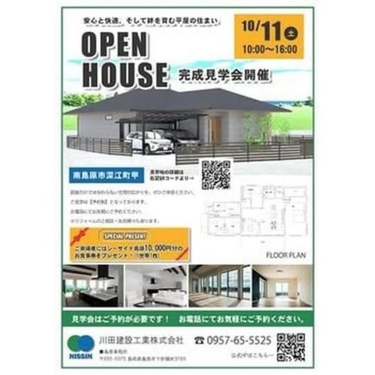 見学会詳細 ホーム 見学会カレンダー 【川田建設工業】10/11(土) 完成見学会を開催 【川田建設工業】10/11(土) 完成見学会を開催 公開日:2025年10月07日 カレンダー カレンダーに追加 Timely カレンダーに追加 Google に追加 Outlook に追加 Apple カレンダーに追加 他のカレンダーに追加 XML ファイルとしてエクスポート 日時: 2025年10月11日 @ 10:00 AM – 4:00 PM 2025-10-11T10:00:00+09:00 2025-10-11T16:00:00+09:00 場所: 南島原市深江町 お問い合わせ: 川田建設工業株式会社 0957-65-5525 イベントのサイト 家づくりフェスタ 川田建設工業が完成見学会を開催いたします。 いつも弊社の家づくりにご関心をお寄せいただき、誠にありがとうございます このたび、施主様のご厚意により、こだわりの詰まったお住まいを特別にご覧いただける完成見学会を開催いたします。 皆様のご来場を心よりお待ちしております😊 日にち:10/11(土) 時 間:10:00〜16:00 場 所:南島原市深江町 ※完全予約制 http://www.kawatakensetsu.co.jp/publics/index/1/detail=1/b_id=1/r_id=14/sp_ssid=2 この記事をSNSでシェア 【浜松建設】【限定公開】地元で暮らす、ちょうどいい木の家を開催 【イーデザインホーム】10/11(土)、12(日)、13(月)長崎市平野町にて完成見学会を開催 コンテンツ 会員工務店一覧 当会は会全体で「あたり前品質」にこだわっています。安心して個性で選んでください。 工務店ギャラリー 「長すて品質」の工務店が作った施工事例を紹介します。 イベントカレンダー 家づくりについて学ぶ会や展示会、オンラインイベントなどを発信してまいります。 家づくり・業者選び 地元の工務店を選ぶ理由、工務店選びのコツをお伝えします。 お客様の声 長すてで家づくりを行ったお客様の喜びの声をご紹介します。 木の家ソリューション 「木の家は良い」と言われるけど、いろいろな事が心配・・・そんな方はご覧ください。 すて木な家づくり 身近だけど、実は知らない「木のコト」。 木の長所を最大限活かした家づくりについて。 住宅履歴システム 住宅の履歴情報を蓄積できるシステム「ながさきハウネット」をご活用ください。 よくあるご質問 家づくりのよくある疑問を Q&A形式でまとめました。 会の施設 木のコトミュージアム 訪れれば、木の家づくりが大好きに! 森林のコト、産地や家のコトが楽しく学べます。 木のコトカフェ 「木のコトミュージアム」内に設置されたカフェ。 木の香りに包まれたお洒落で落ち着く空間でコーヒー&ランチは如何ですか? 木のコト インテリア館 県下トップクラスの展示点数を誇る、オーダーカーテンのプロショップ。 あらゆる工務店の家づくりの個性に精通し、私たちは住宅デザインのアンカーだという誇りを持って提案を行なっています。 木のコトIoT館 九州唯一の、住宅IoT体験施設。人生100年時代には、100年の価値が持続する家づくりと、暮らし方を更新し続けられる機能が必要です。 ここではIoTを通じた現在と未来の暮らし方の提案を、見て触って体験して頂けます。